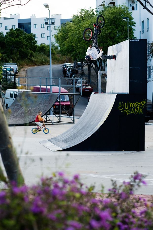 Pedro konnte leider nicht wirklich fahren, weil eine Seite seines Lenkers praktisch ganz abgebrochen war. Das hielt ihn aber nicht davon ab, einhändig angefahrene und gelandete 180s zu probieren, die durchschimmern ließen, dass er sein Rad hervorragend beherrscht. Die Fotos von der Session haben es leider nicht in die Story geschafft und die Mailadresse von Eric ist mit meinem Telefon kurz nach der Tour untergegangen, deswegen mit zweieinhalb Jahren Verspätung: Danke, meine Herren!