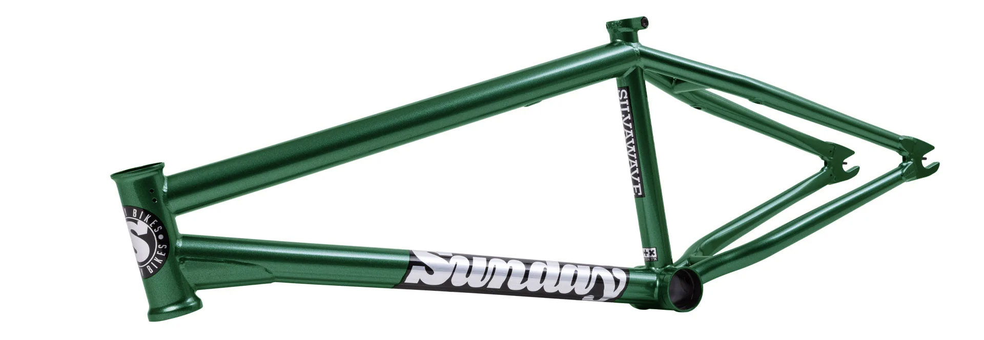 Über SIBMX sind hierzulande zwei Rahmen von Sunday Bikes in neuen Farben eingetroffen. Da hätten wir zum einen den Silvawave in seaweed und zum anderen den Street Sweeper mit grünen und lila Flammen. Check it!
