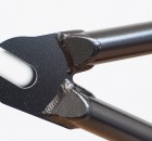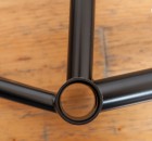 Der Rahmen kommt in den Oberrohrlängen 20,8″ und 21,15″, den ich fahre. Er ist in den Farben dunkelrot und schwarz erhältlich. Außerdem wird Lahsaan Kobza seine eigene Farbe bekommen: hellbraun.