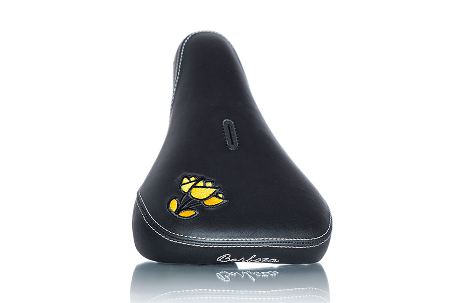Bei Jarrens Signaturesattel handelt es sich natürlich um einen Pivotal Seat. Damit das Ding auch bequem ist, wurde er mit einem weichen Kunstleder bezogen.