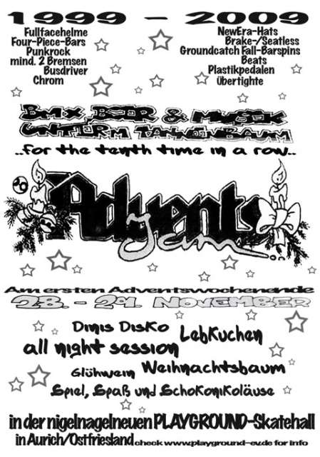 Wie jedes Jahr findet am ersten Adventswochenende der wohl familiärste Jam des Jahres in der Playgroundskatehalle in Aurich statt.