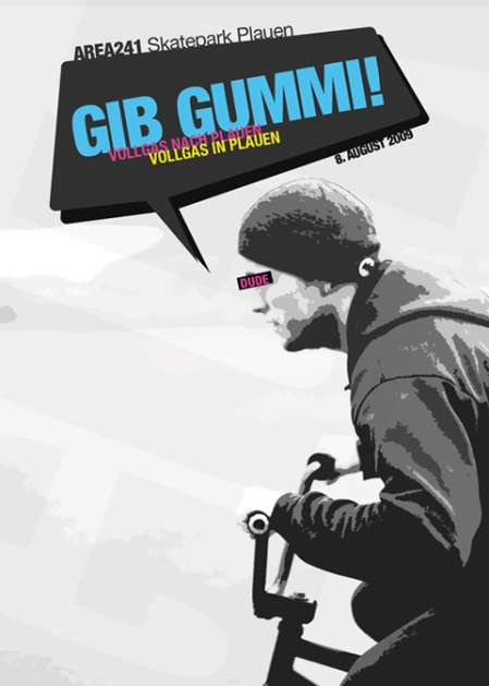 Am 08.08.09 findet ab 10 Uhr anlässlich des 2. Geburtstags des Skateparks AREA241 in Plauen der „Gib Gummi Jam“ statt.