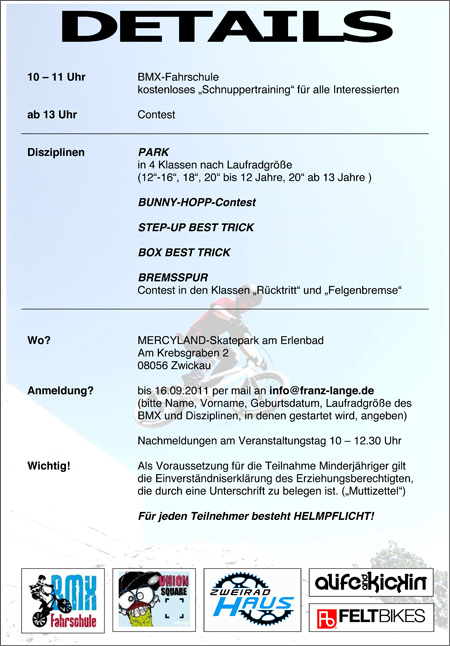 Im Rahmen des „Festival des Sports“ findet in Zwickau ein Anfänger- und Nachwuchcontest mit verschiedenen Disziplinen statt.