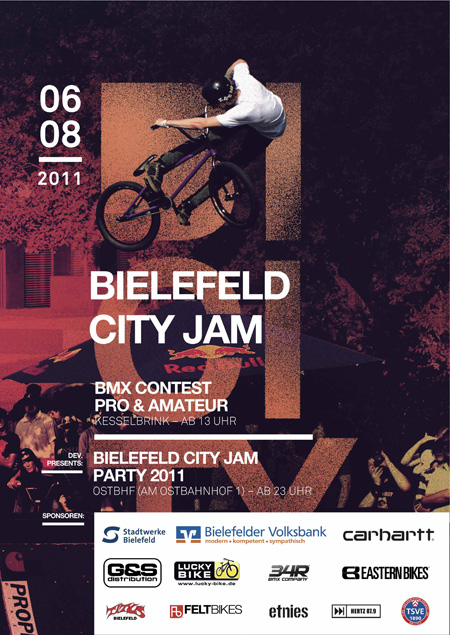 Benny Kopp rührt auch 2011 sein Erfolgsrezept wieder an und lädt zu einem Park- und Halfpipecontest in die Stadt, welche es laut Verschwörungstheorien gar nicht gibt. Überzeugt euch von dem Gegenteil und seid auf jeden Fall dabei, dann habt ihr auch die Chance, live dabei zu sein, wenn Tim Eichert wieder den schwierigsten Trick in BMX andreht und einer unserer Mitarbeiter auf der anschließenden Party seine Opfer mit einer Klobürste durch den Club Ostbahnhof jagt.