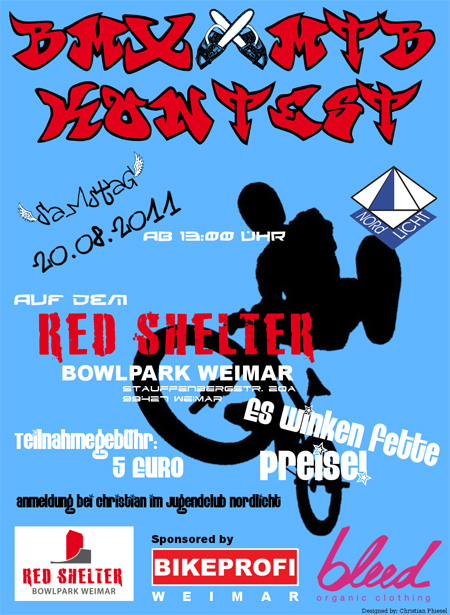 Im Bowlpark des Jugendclubs Nordlicht in Weimar findet ein BMX- und MTB-Contest mit jeder Menge Sachpreisen statt.