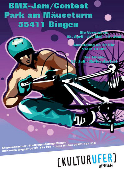 Im Rahmen einer kleinen Contestserie findet auf der Skateanlage Mäuseturm in Bingen der dritte Vorlauf für das große Finale auf dem Kulturuferfest am 3. Juli 2011 statt.