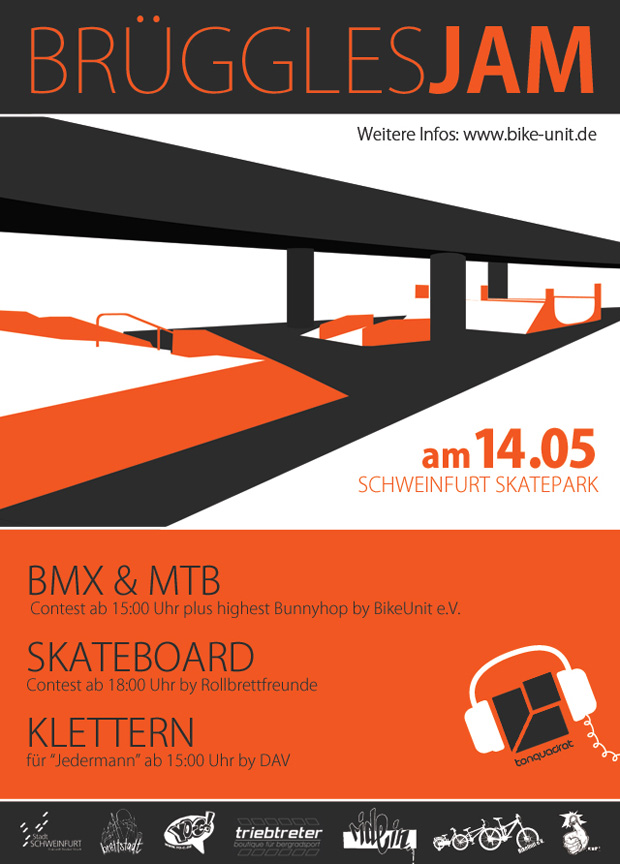 Unter der Brücke in Schweinfurt findet der erste Contest statt! Neben einem BMX-Contest gibt es andere Belustigungen zuhauf: einen Mountainbikecontest (wer hat das Rad mit den meisten Neonfarben und dem größten Federweg), ein Skateboardcontest (wer schafft irgendeinen beliebigen Trick in weniger als 57 Versuchen) und Hilfestellung beim Erklettern der Stadtmauer vom Deutschen Alpenverein.