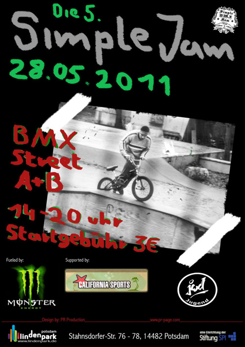 Acht Jahre, nachdem Tobias Wicke hier einen Tailwhip auf das Dach des Vereinshauses sprang, findet im Potsdamer Lindenpark der 5. Simple BMX-Jam statt.