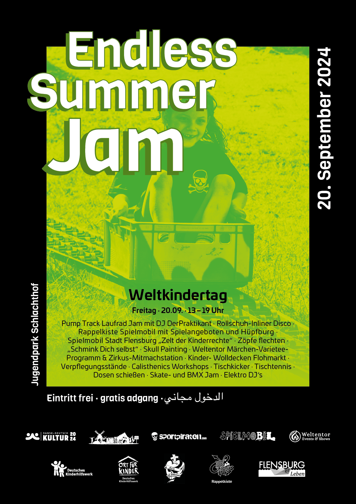 Anlässlich des Weltkindertages gibt es am Freitag, den 20. September viele Angebote für Kinder, während am Samstag dann ein BMX- und Skatejam Konzerte, DJs und weitere Angebote für Ältere geplant sind. Hört sich nach ner guten Zeit an, also nix wie hin da!
