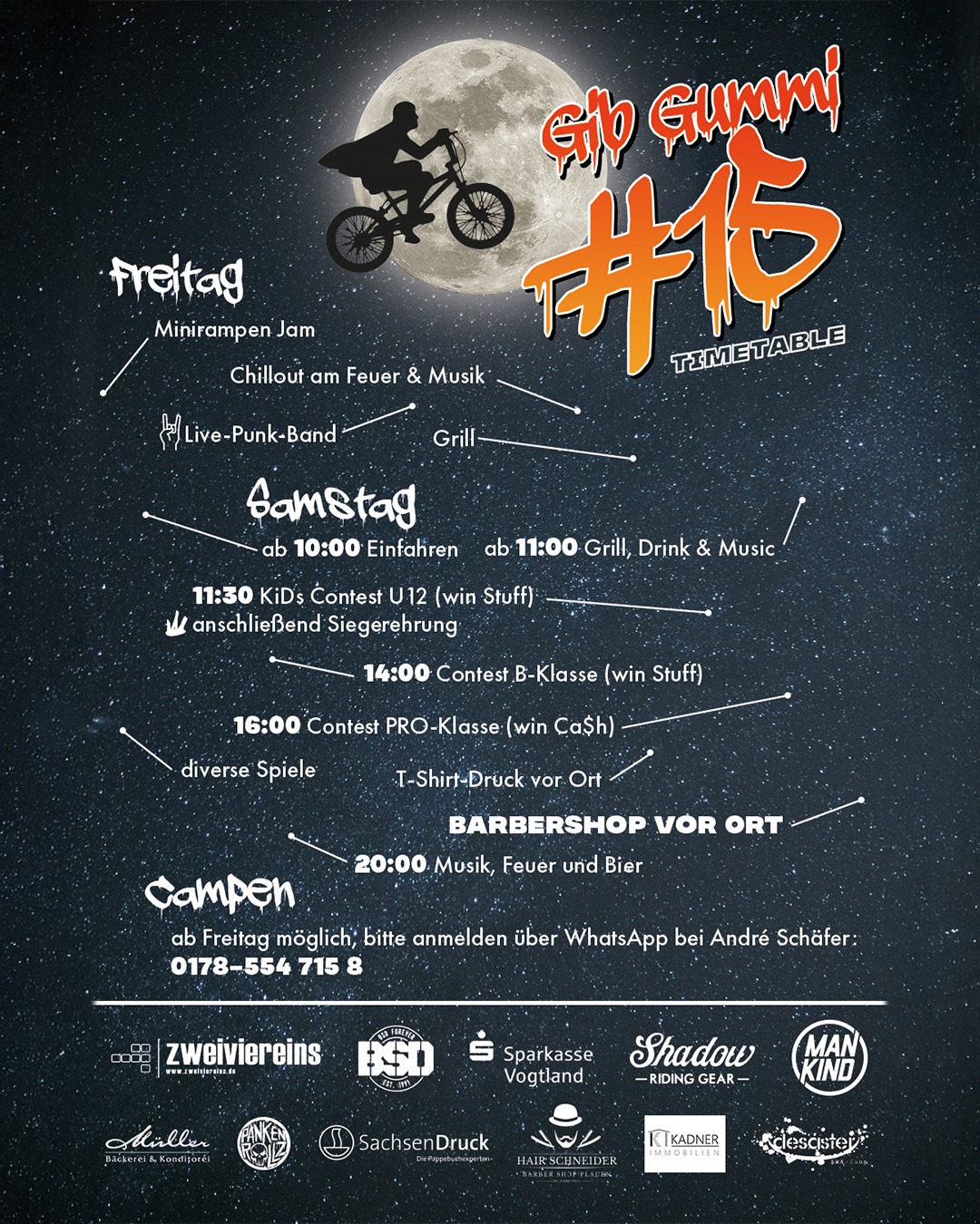 Der Gib Gummi Jam ist dieses Jahr echt knapp dran mit Infos verteilen, aber nichtsdestotrotz steht man in Plauen in den Startlöchern für einen weiteren legendären BMX-Contest auf dem Gelände der area241!
