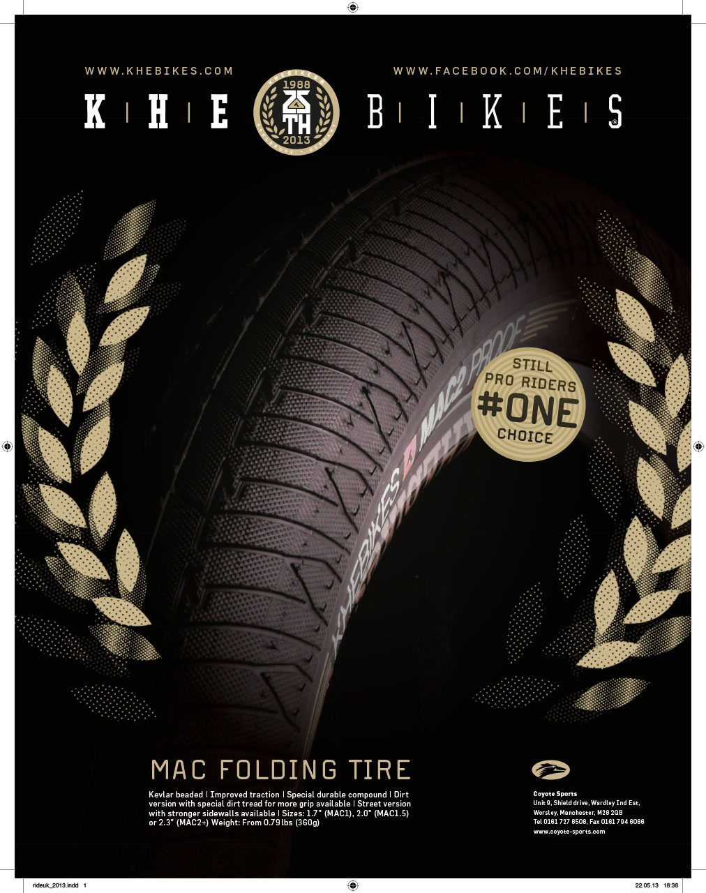 Unter den vielen Produkten, mit denen KHEbikes Industriestandards gesetzt hat, sticht jedoch eins heraus: der MAC-Reifen, seines Zeichens der erste BMX-Freestylefaltreifen aller Zeiten.