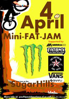 All good things have to come to an end. The Sugar Hills spot will not survive the year 2009. The dirt jump spot at the Valkendijk lasted over 20 years though so really, we cannot complain. The first Mini-FAT-JAM was held on 22 April 1990. It was an excuse to get together and ride together. Nothing has changed about that idea with the upcoming jam on 4 April next. As usual the week before the Mini-FAT-JAM some serious work needs to be done to get the jumps back in shape. Locals will dust off their bikes and call up their friends to see if they’re down for a session. Party place OJA will make sure they’ve got enough beer in stock and some extra boxes of frikandellen and smikkelsaus are on order at the local snackbars. If you haven’t experienced a FAT-JAM or Mini-FAT-JAM in your life at the spot on the Valkendijk, this is your last chance. A historical BMX spot is going to die but something new is in the works somewhere else in Aarle-Rixtel so no, this is not going to be the last ever FAT-JAM in Ale Blie. We’ve got to keep a reputation up.