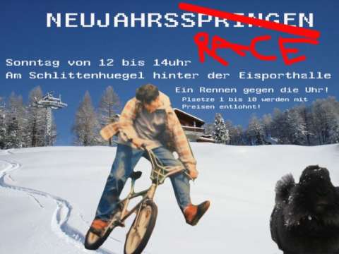Tausendsassa Timo Mrukwia lädt ein zum Schneerennen am Darmstädter Schlittenberg hinter der Eissporthalle. Auf dem hervorragend designten Flyer stehen alle Einzelheiten also erscheint zahlreich, es gibt sogar Preise!