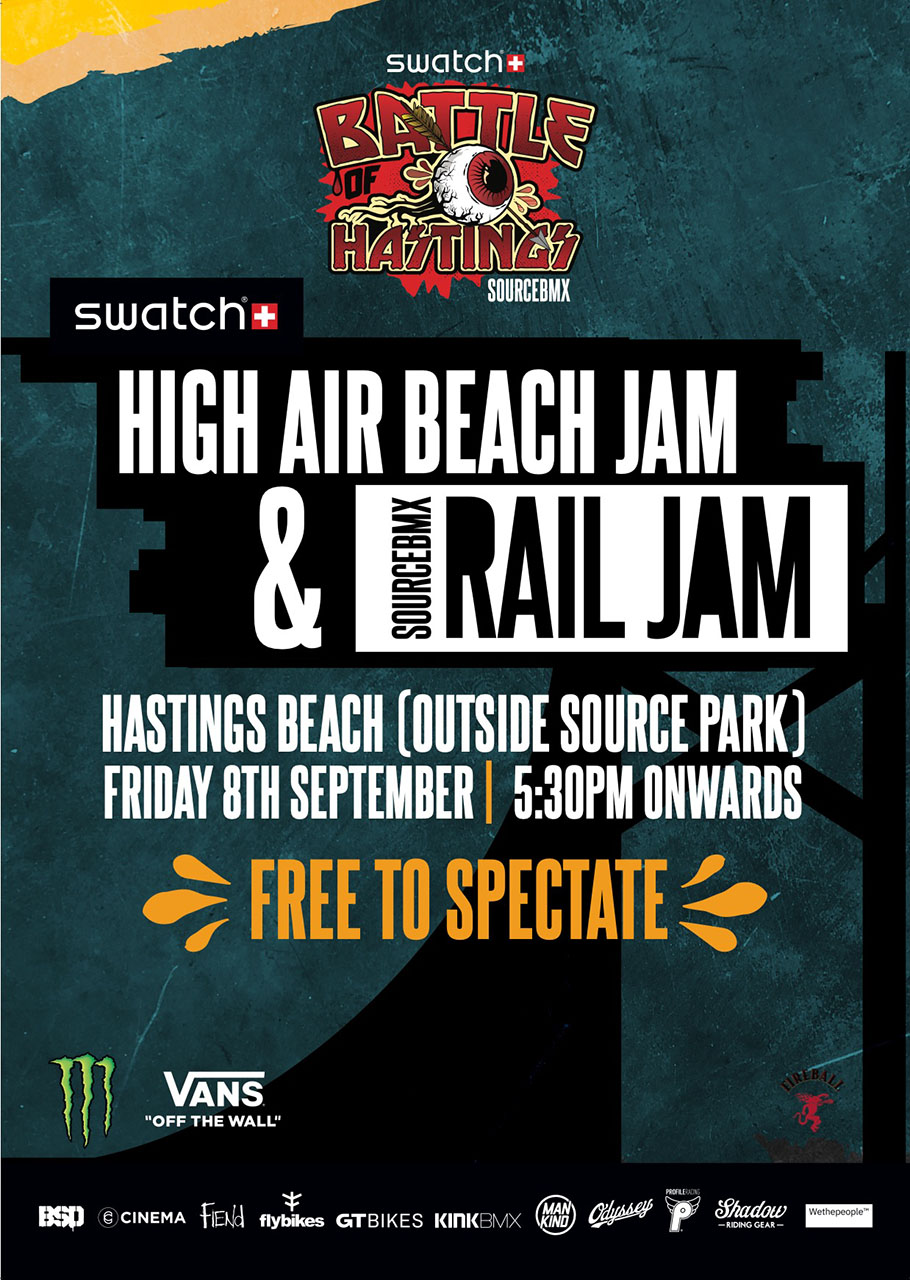 Wie bereits letztes Mal startet die Veranstaltung am Freitag mit einem Rail Battle am Pier von Hastings (UK), also praktisch direkt vor den Pforten des Source BMX Parks. Im vergangenen Jahr ging es dort hammerhart ab, dennoch sind einige Neuerungen geplant. Außerdem ist der Eintritt frei und im Anschluss findet auch noch ein Highest-Air-Contest statt, für den sich unter anderem Josh Dovey, Chase Hawk und Sergio Layos angekündigt haben. Das wird wild!
