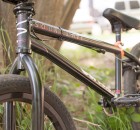 Das ist schon eher ein Streetrahmen. Er hat ein Gusset am Steurrohr, dicke Ausfallenden und große Rohre. Der Rahmen sollte also auch alles mitmachen können. Insgesamt fühlt er sich sehr fest und steif an und fährt sich dadurch außerordentlich sauber und präzise.