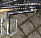 Jan Delay würde sagen: „Ja, denn das sind vom Dixi-Klo die Schwestern!“ Für mich ist das ein gutes Argument, doch der Grund ist natürlich ein anderer. Im Flatland hat man mit allen Parts recht oft Bodenkontakt und Plastik würde da noch schneller abnutzen. Metall ist einfach langlebiger und vermittelt ein stabileres Gefühl. Selbst Alu-Barends hinterlassen scharfe Kanten nach einem unsauber gerollten Hitchhiker und haben mich wieder zu Stahl-Barends greifen lassen. Bei den Pedalen ist der ganz ähnlich. Außerdem rutscht man von Medallpedalen nicht so schnell ab, und sie verdeutlichen einem unmissverständlich, wenn man einen Fehler begangen hat.