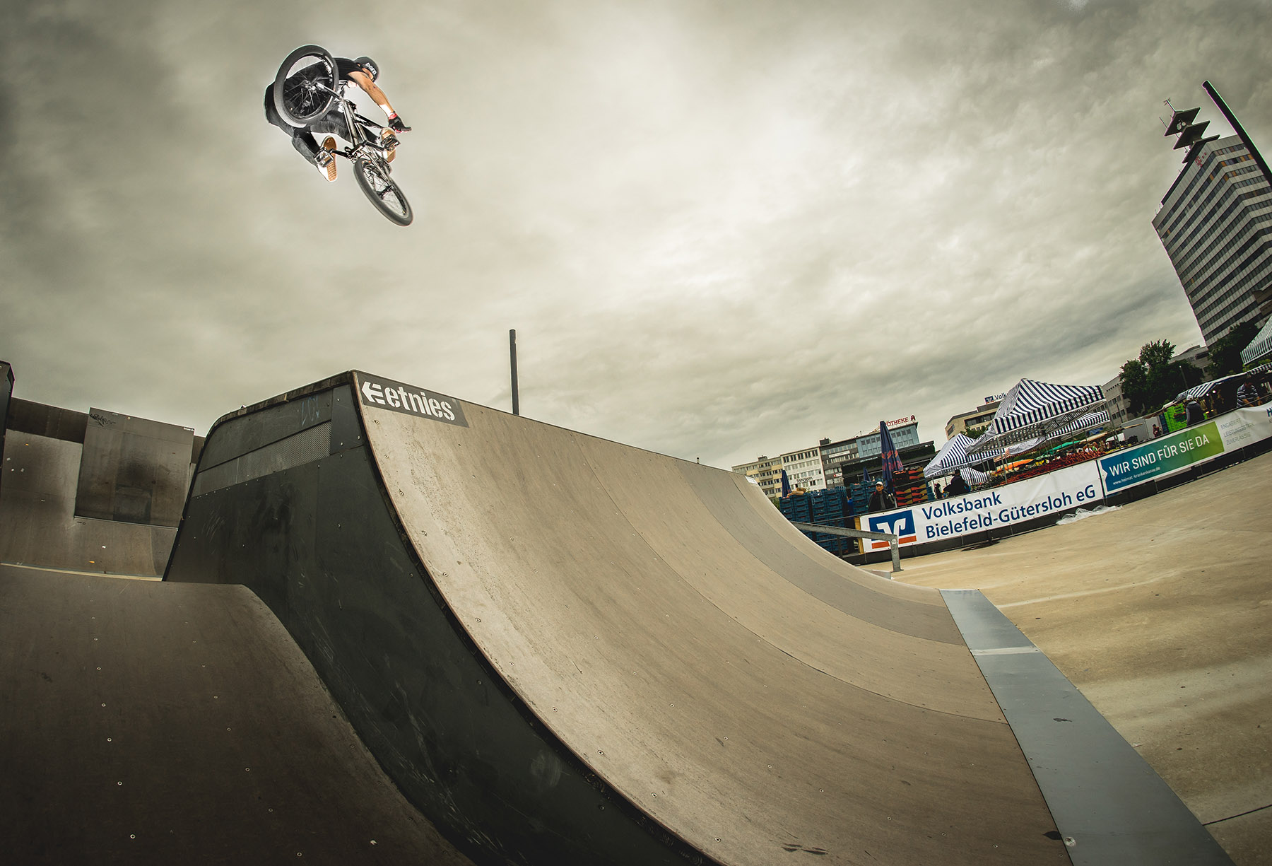 Wilde Transfers, Party satt und Daniel Tünte mit einer Bremse am Rad: Der Bielefeld City Jam war trotz einiger Regenschauer am Samstagnachmittag auch in diesem Jahr wieder ein voller Erfolg. Bevor unser Video mit den Highlights eines super Wochenendes in der Stadt, die eigentlich ja gar nicht existiert, Anfang kommender Woche online geht, haben wir zur Überbrückung der Wartezeit hier schon mal eine Gallery mit einigen Fotos für euch, die Jan Bekurtz (@janbekurtz) im Kesselbrink Bike- und Skatepark geschossen und uns netterweise zur Verfügung gestellt hat. Die Ergebnisse vom Bielefeld City Jam 2017 findest du HIER und all jenen unter euch, die es noch nicht gesehen haben, sei an dieser Stelle außerdem das Videointerview, das Thomas Stellwag für uns mit Jens Werner, dem BMX-Freestyle-Koordinator des Bunds Deutscher Radfahrer, am Kesselbrink zum Thema “BMX bei Olympia” geführt hat, wärmstens ans Herz gelegt. Mehr dazu HIER.