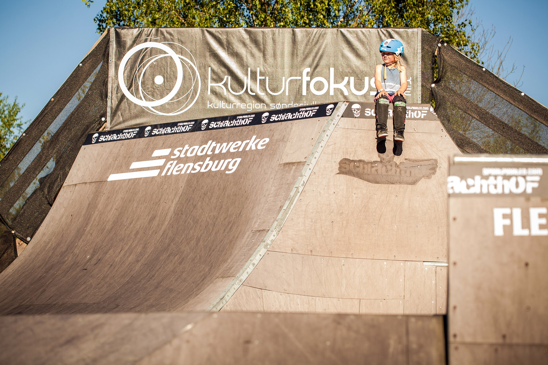 Am vergangenen Pfingstwochenende fand in Flensburg der Butcher Jam statt, der auch in diesem Jahr wieder ein Erfolg auf der ganzen Linie war. Fahrer_innen aus dem ganzen Bundesgebiet sowie England, Wales, der Tschechischen Republik, den Niederlanden und Dänemark gaben drei Tage lang in der nördlichsten Stadt Deutschlands mächtig Vollgas – und das nicht nur tagsüber auf dem Gelände des Schlachthof Skate- und BMX-Parks, sondern auch abends an der Hafenspitze (Stichwort: rolfen mit Feuerwerk) und natürlich auf den offiziellen Afterpartys. Den Vogel in puncto “Party hart” schoß dabei eindeutig Daniel “Ralle” Juchatz ab, der während der Parkvorläufe mit einem Footjam auf der Vertwall nicht nur den Trick des Contests schaffte, sondern zu späterer Stunde dann leider auch einen ziemlich heftigen Unfall auf der Tanzfläche hatte und die Nacht mit ausgekugelter Schulter im Krankenhaus verbringen musste. Gute Besserung, Digga!