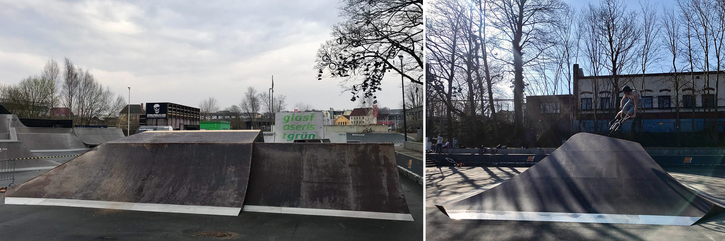 Kurze oder lange Version? Okay, ich nehme die kurze. Die lange will heute eh keiner mehr hören. 2001 habe ich ein paar Kids im Wald getroffen, die Bande hatte illegale Hügel gebaut. Polizei und Förster waren vor Ort und im Anschluss daran, haben wir Demonstrationen für einen BMX- und Skatepark in Flensburg organisiert und durchgeführt. Ich bin selber nie gefahren … fast nie!