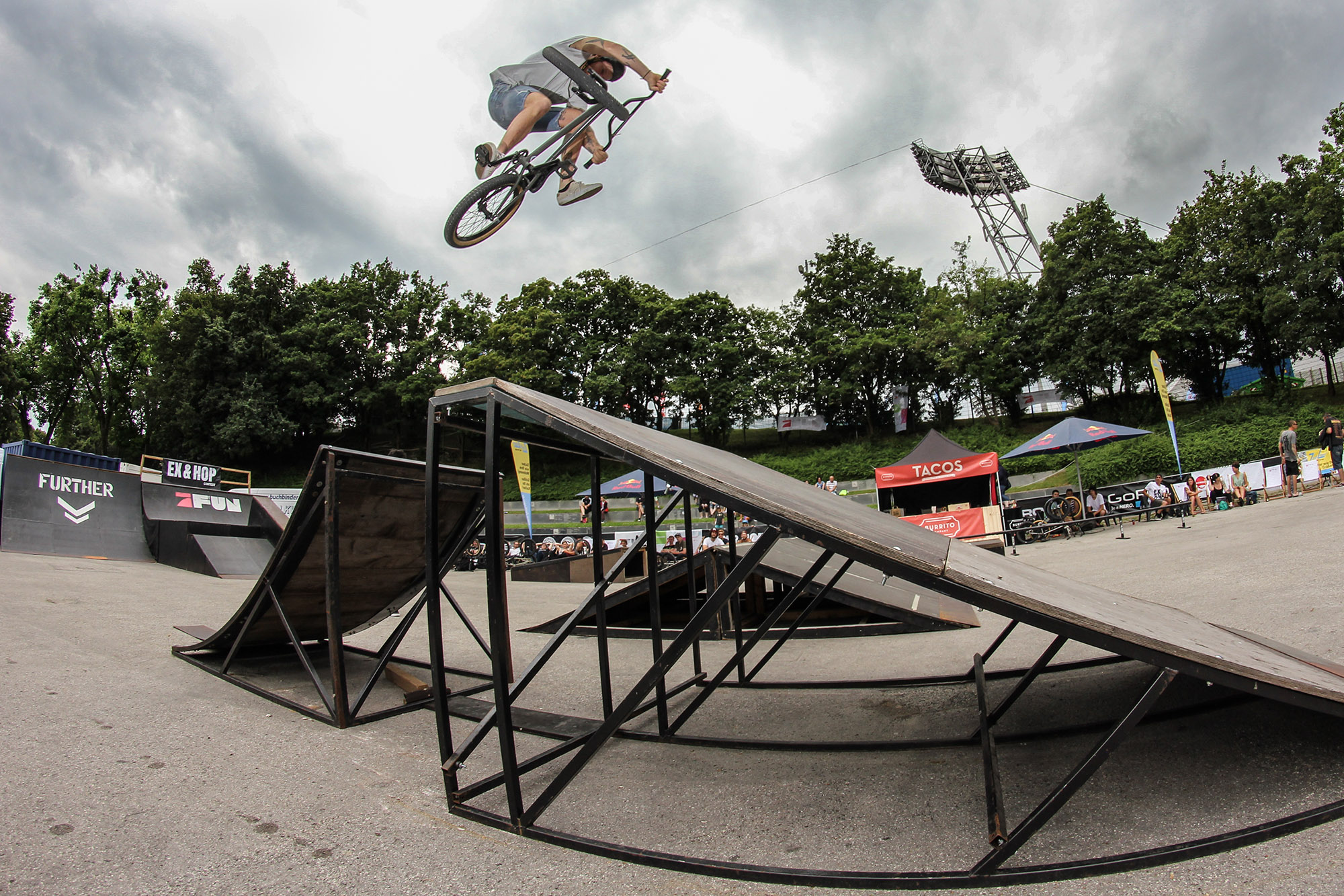 Nachdem BMX Street Rink in diesem Jahr aus dem Programm des Munich MASH gestrichen wurde, sah es zunächst so aus, als würde auf der Veranstaltung in diesem Jahr keine Zwanzigzollaction geboten werden. Doch zum Glück sprang kurzerhand das Team von EX&HOP ein und veranstaltete einen entspannten “Cash 4 Tricks”-Contest auf dem firmeneigenen Rampenparcours. Was dort an guten Manövern geboten wurde, verraten das Video (oben) und die Fotogallery weiter unten.