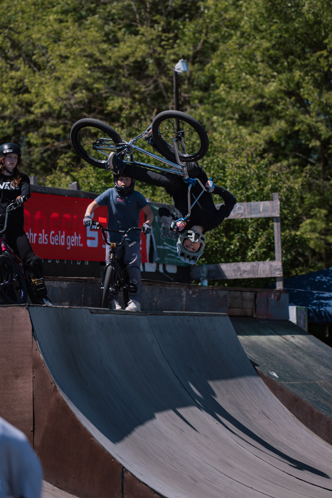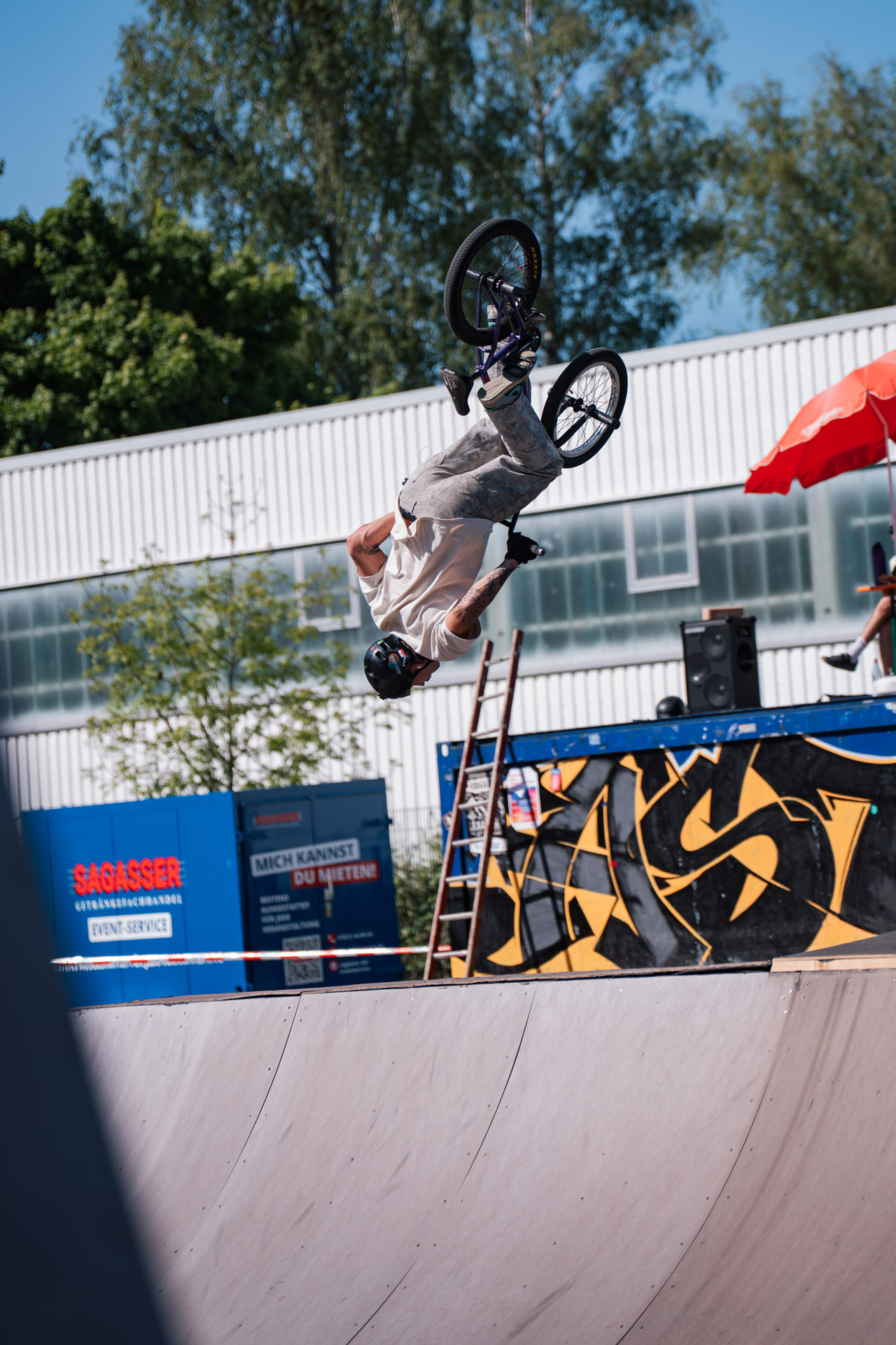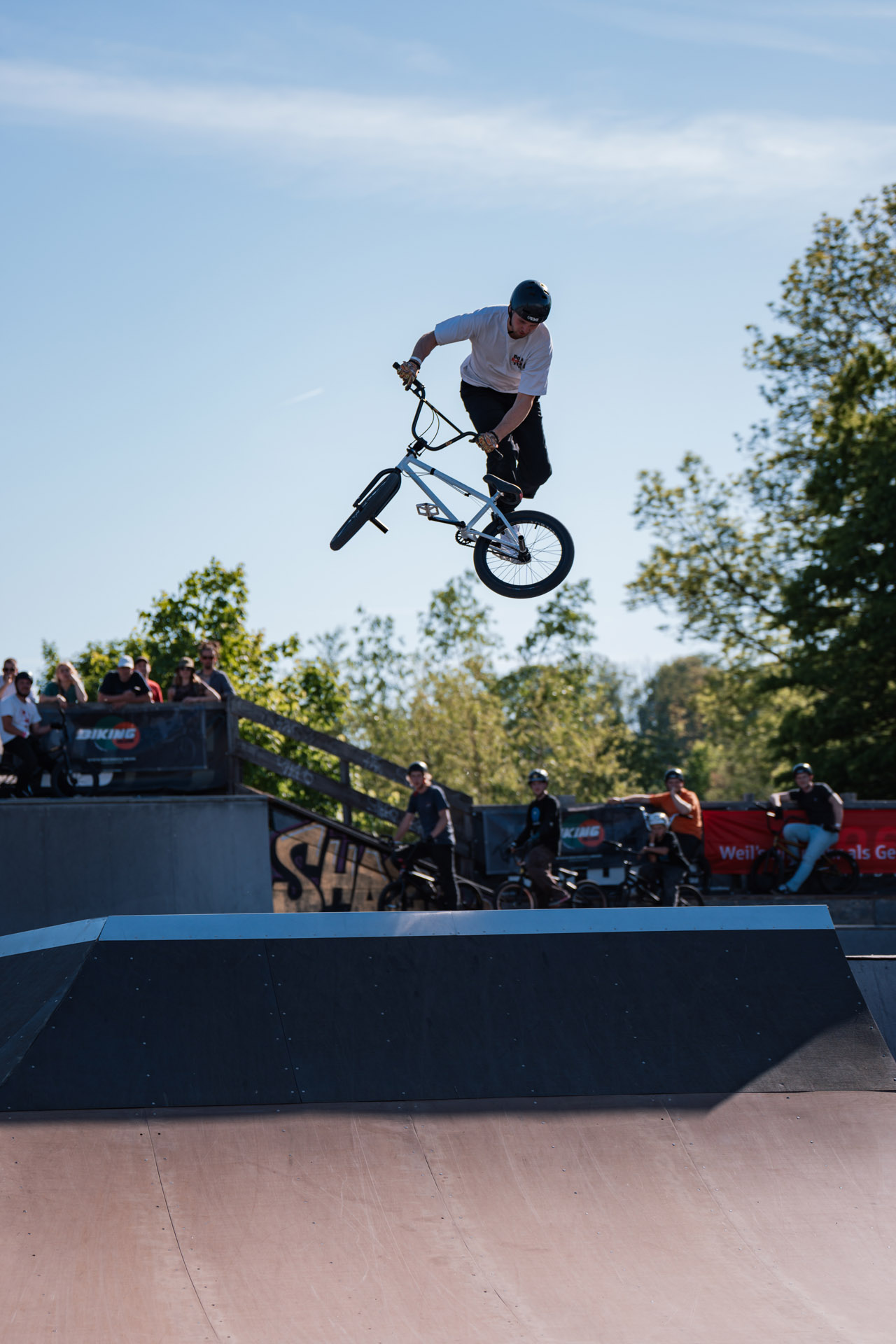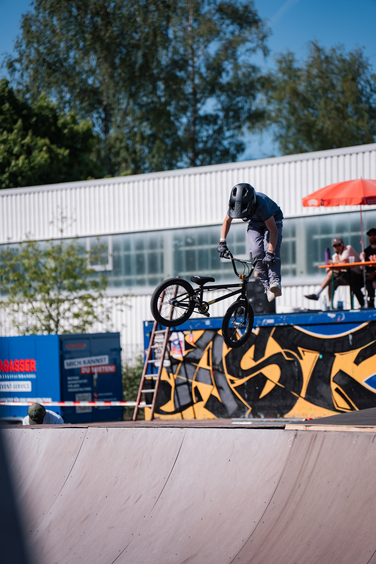 Als BMX-Abschluss gab es – wie jedes Jahr – eine dicke Minirampensession. Es machte den Anschein, als würde Jonas Lindermair nur der 2 m hohen Spine Minirampe wegen anreisen. Hier ging seine Show los, bestehend aus Flair Combos, übertriebenen Inverts und meterhohen, genosediveten Dreiern über unsere Doppelcopingspine. Insofern überraschte es auch niemanden, dass das Ergebnis wie folgt aussah: