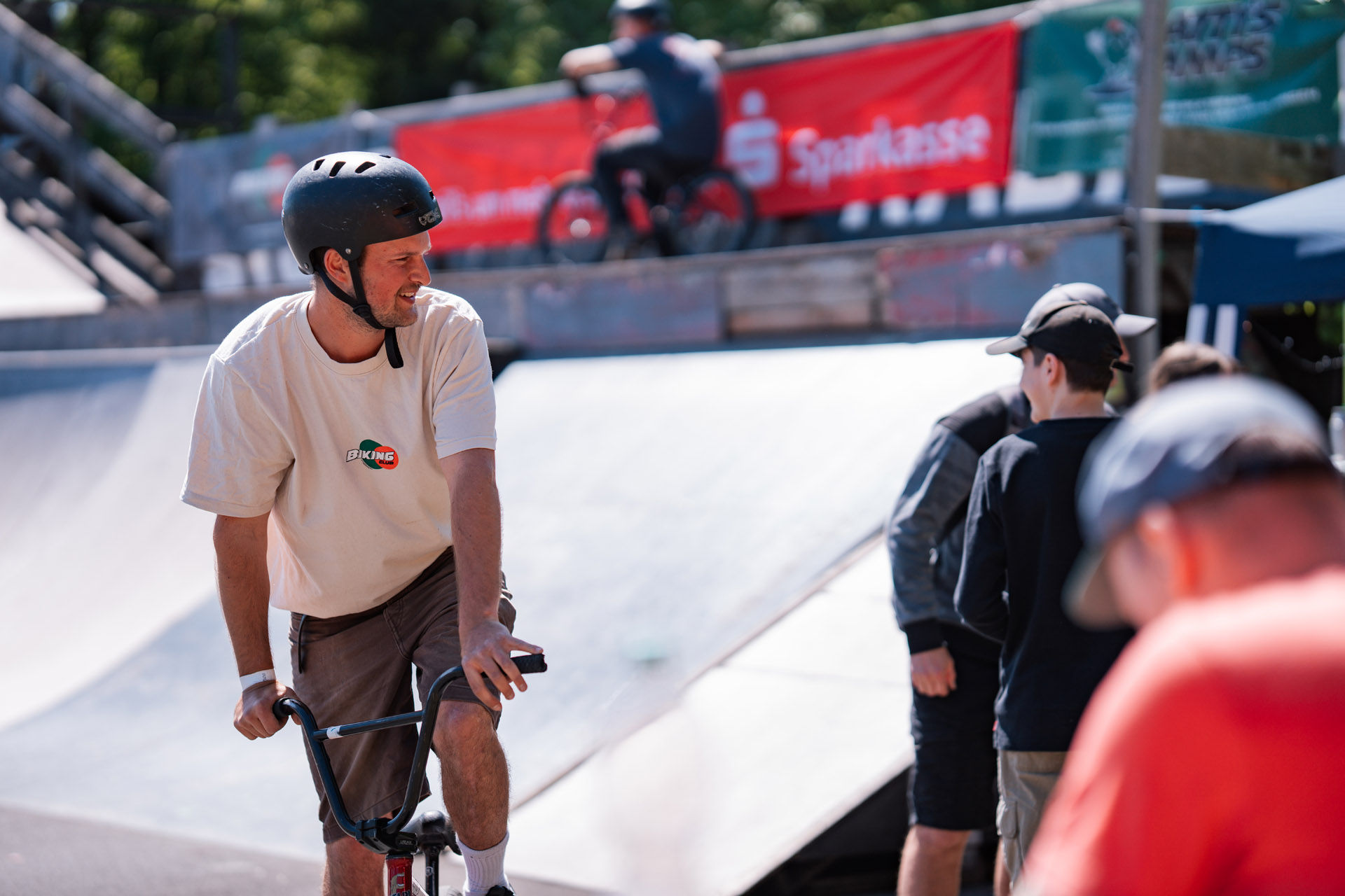 Die Locals und Sozialarbeiter am und um den neuen Itz Park in Coburg waren auf jeden Fall schwer auf begeistert, wie lässig und cool denn so ein BMX-Jam ist. Und was da alles geht. Und die circa 10 bis 15 Fahrer und Fahrerinnen waren genauso begeistert, was denn der neue Itz Park so alles kann und was da geht. „Wie geil ist Coburg jetzt, Alter! Hier kannst du einfach alles fahren, was Bock macht. Erst Street und Betonkram und dann fette Rampen am Locals Park“ meinte ein Mitglied des Team Thüringens. Jo hat dabei einige coole Fotos schiessen können, die ihr bei uns auf der Website findet.