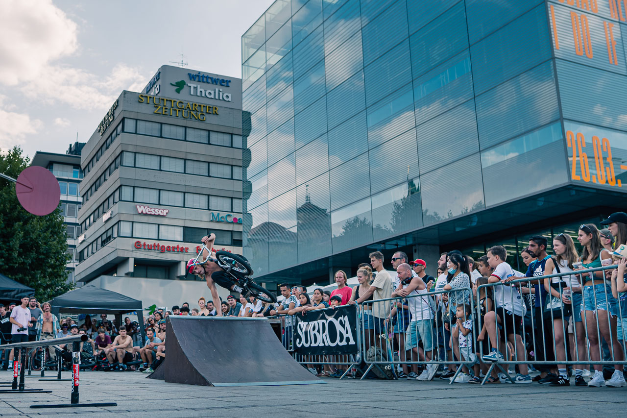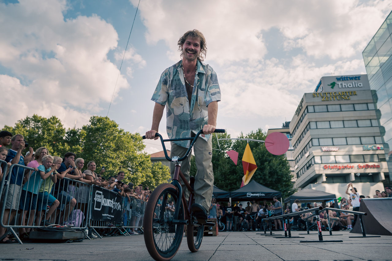 Endlich wieder Grindsport im Schwabenland! Am vergangenen Wochenende fand im Rahmen des Streetartfestivals der City-Initiative Stuttgart der kunstform BMX Streetrail Battle statt. Dabei handelt es sich um eine Art Sommerversion der legendären Stock Session. So kamen auch beim Streetrail Battle die Obstacles aus dem berühmt-berüchtigten Lagerraum von kunstform zum Einsatz und in der Pro-Klasse traten die Fahrer im Battleformat gegeneinander an.