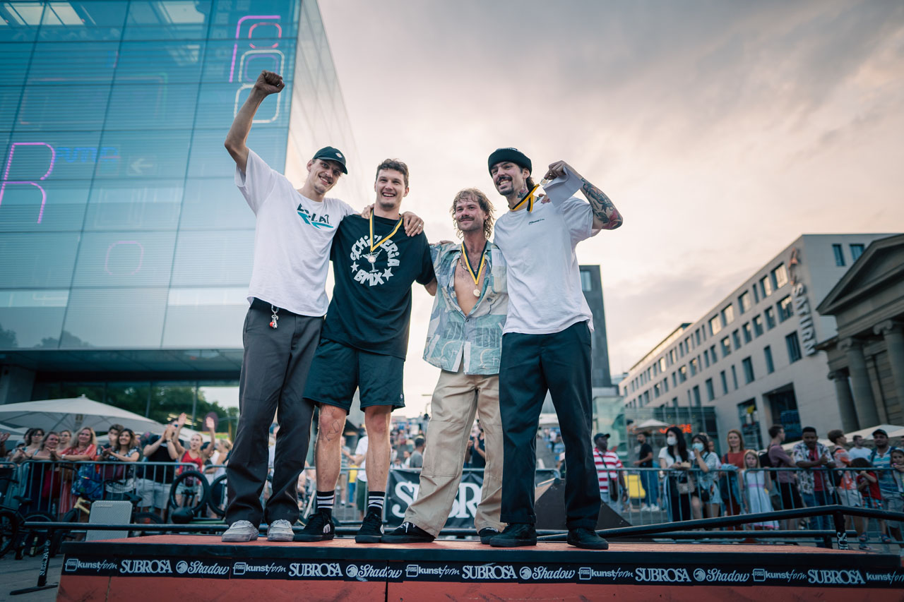 Der einzige Unterschied war, dass der Schweiß nicht wie bei Stock Session von der Decke tropfte, sondern unter freiem Himmel geschwitzt wurde, denn der kunstform Streetrail Battle wurde draußen, genauer gesagt auf der Königstraße ausgetragen. Für all jene unter euch, die sich in Stuttgart nicht so gut auskennen: Bei der Königstraße handelt es sich um Stuttgarts Einkaufsmeile Nummer 1, ein dementsprechend großes Publikum war am Start. Hier sind einige Impressionen und die Ergebnisse eines spitzenmäßigen Tags in Stuttgart. Das dazugehörig Video folgt in Kürze. Yeww!