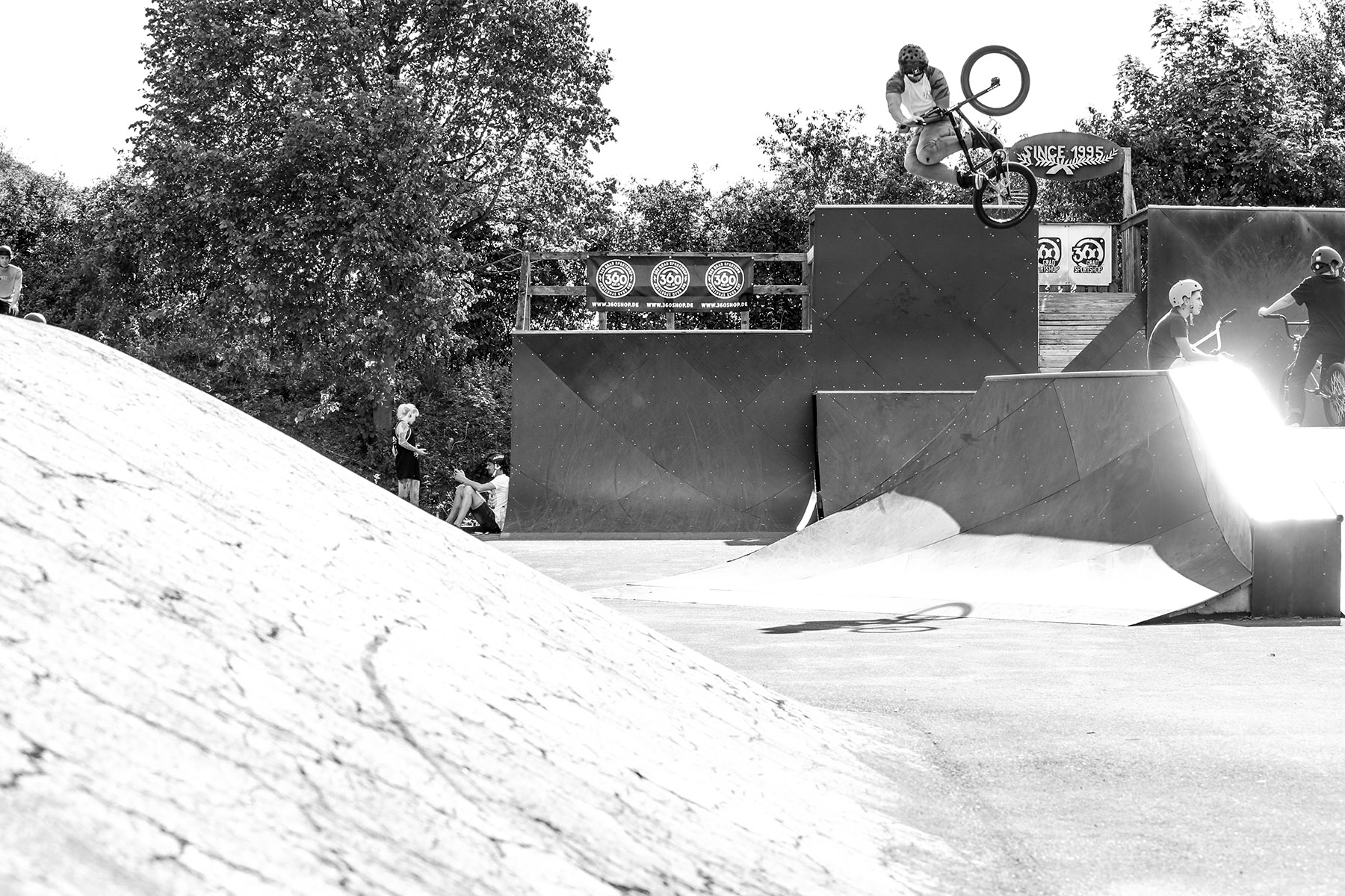 Alexander Kusch von AllRide BMX Distribution und dem 360 Grad Sportshop war maßgeblich an der Renovierung des Lohhof Skateparks beteiligt, verletzte sich beim Testen der Rampen jedoch leider am Fuß und konnte deshalb am Tag des Jams nicht fahren