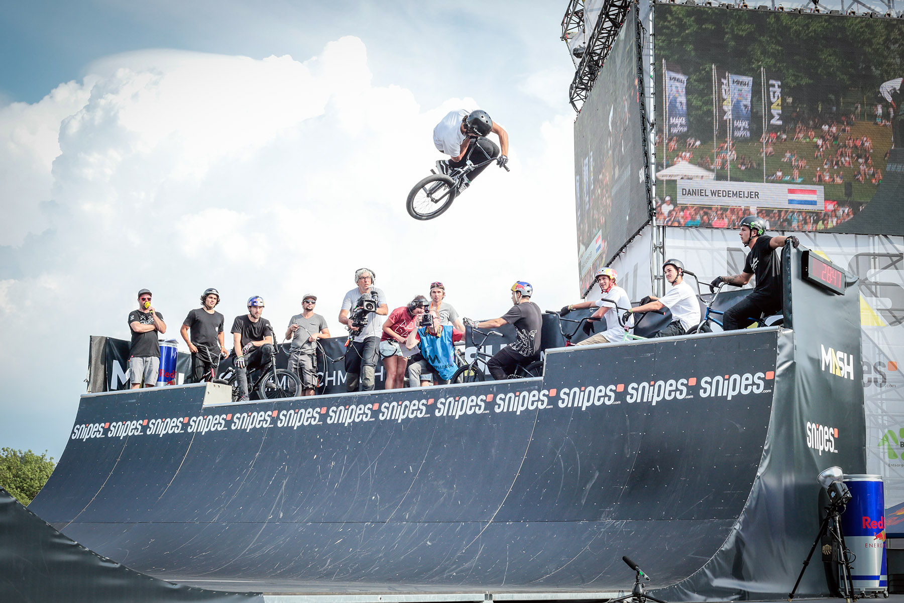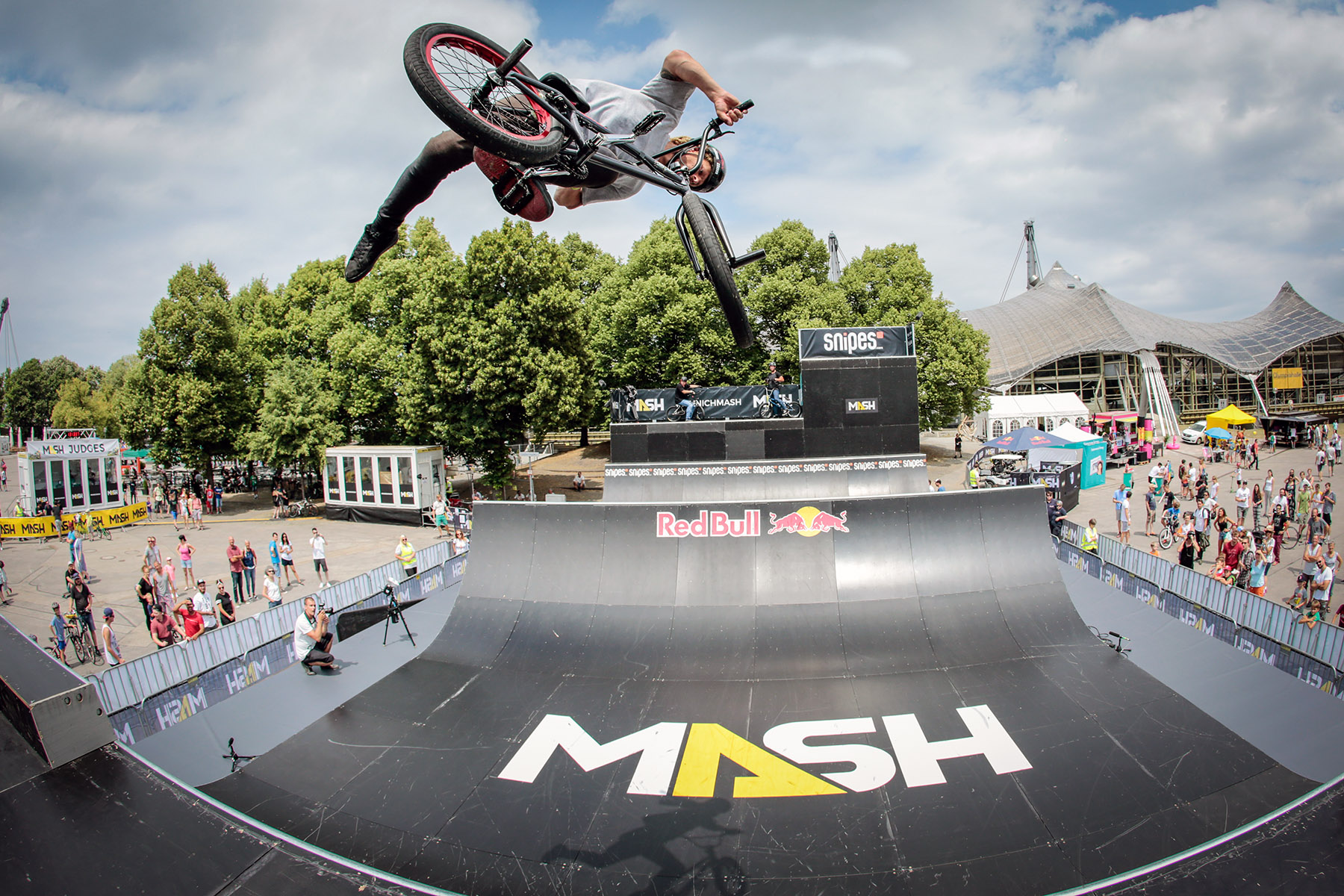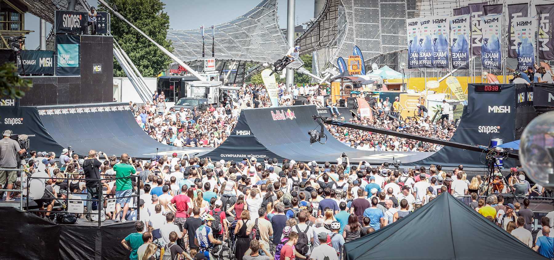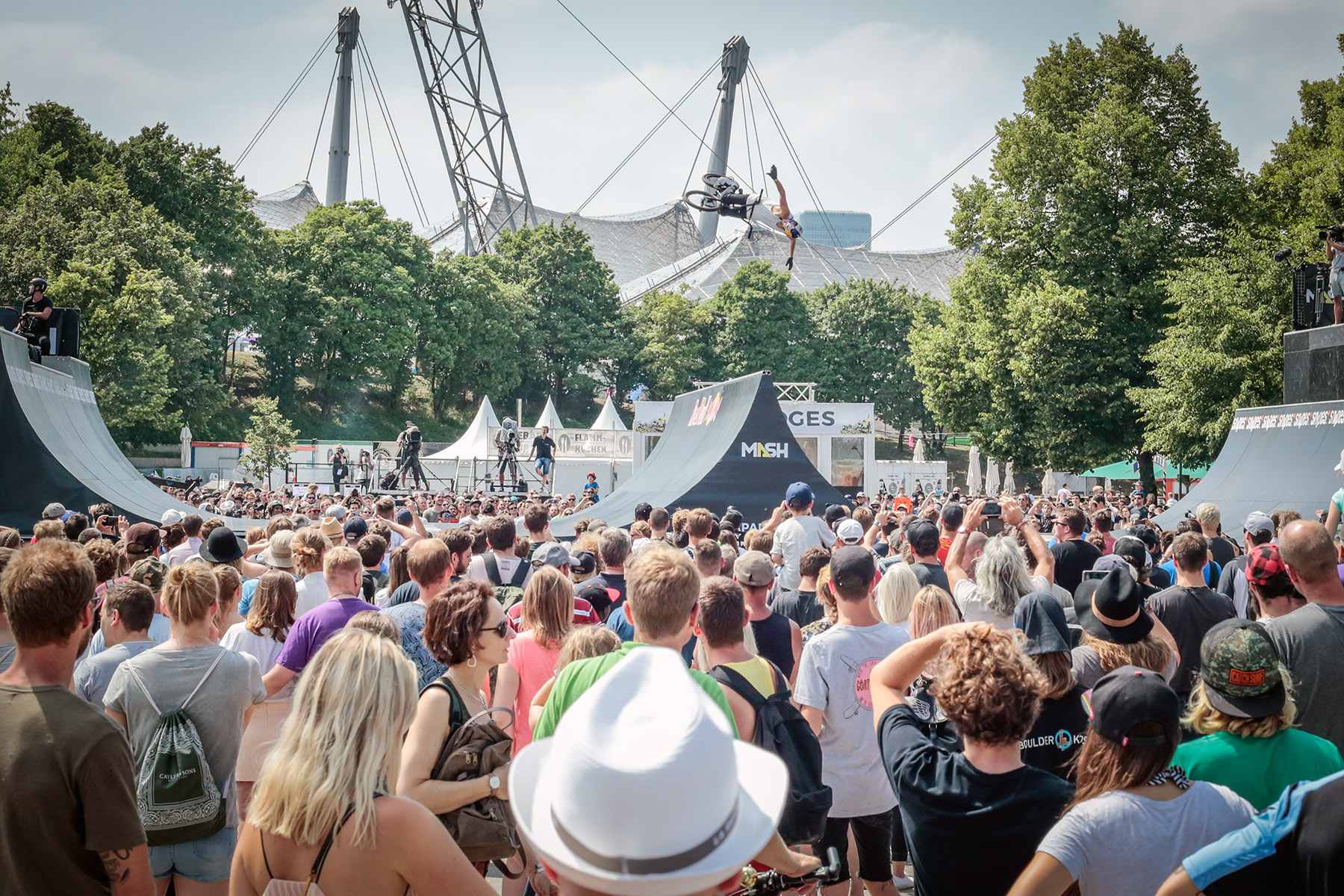 Bei bestem Wetter und vor einer imposanten Kulisse feierte der “BMX Spine Ramp”-Contest am vergangenen Wochenende auf dem Munich MASH 2017 eine gelungene Premiere. Mehrere tausend Zuschauer_innen waren am Samstagnachmittag dabei, als 12 handverlesene Fahrer aus aller Welt im Münchener Olympiapark ordentlich Radau machten.