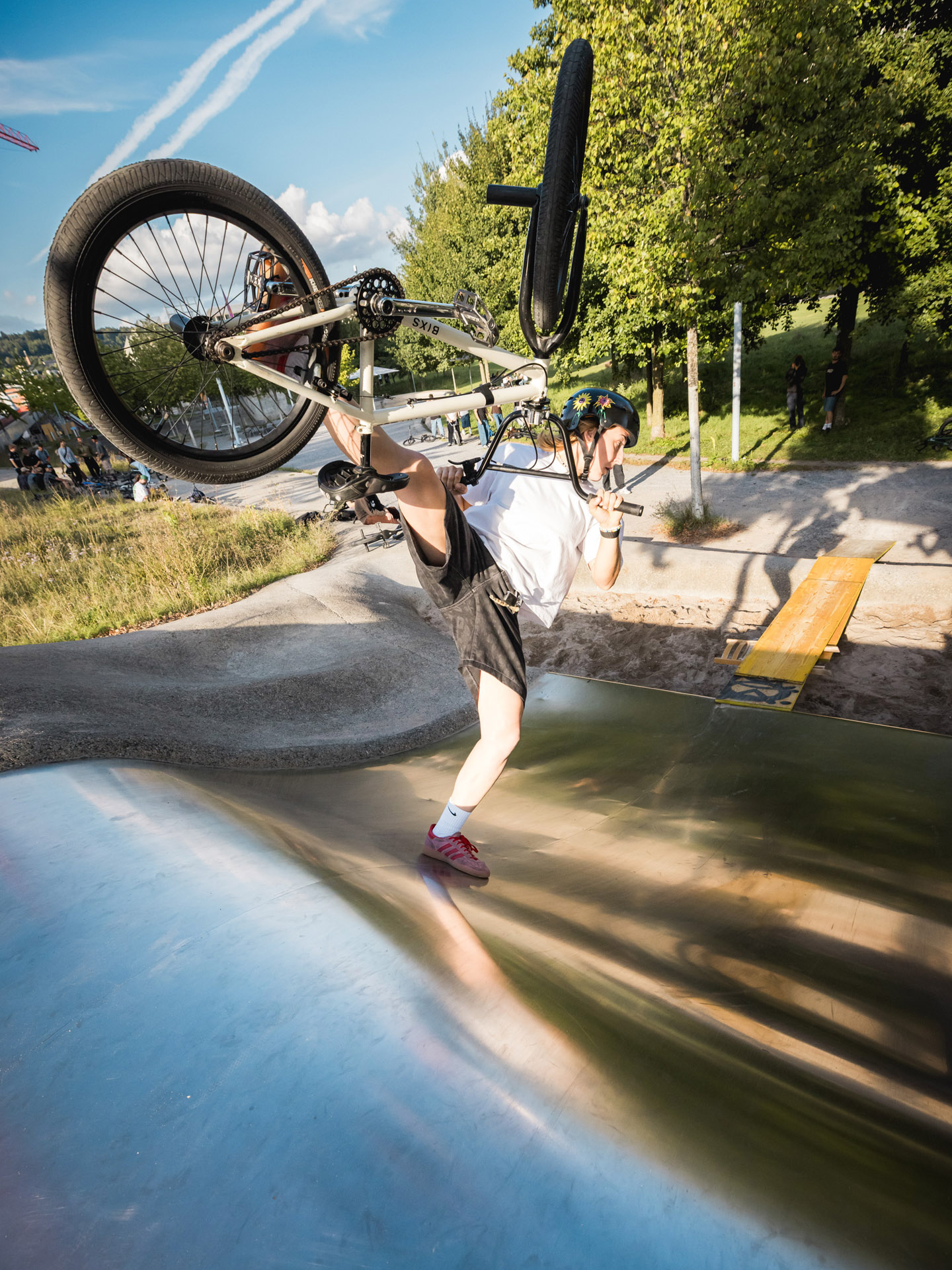 Für dieses Foto wurde die 1. Regel von BMX beachtet, die da lauter: Schneller fahren und mehr reinlehnen!