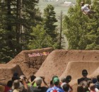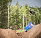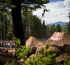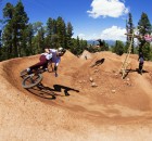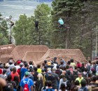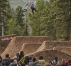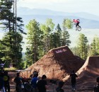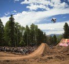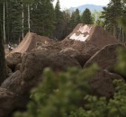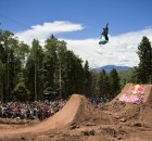 Dafür war in der Nähe eines Urlaubsorts mit dem schönen Namen Angel Fire eine fast 800 Meter lange Trailsline in ein Waldstück gebaut worden. Die Fahrer brauchten fast eine Minute, um die gesamte Strecke abzufahren, die zu dem mit riesigen Hügeln aufwartete. Brian Foster saß in der Jury und war von dem Set-up sichtlich beeindruckt: “Das waren vielleicht die größten Sprünge, die ich in meinem Leben bisher gesehen habe – und ich bin ja schon ein Weilchen dabei.” Wie groß die Dinger wirklich waren, lässt dieses POV-Video mit TJ Ellis und Pat Casey erahnen: