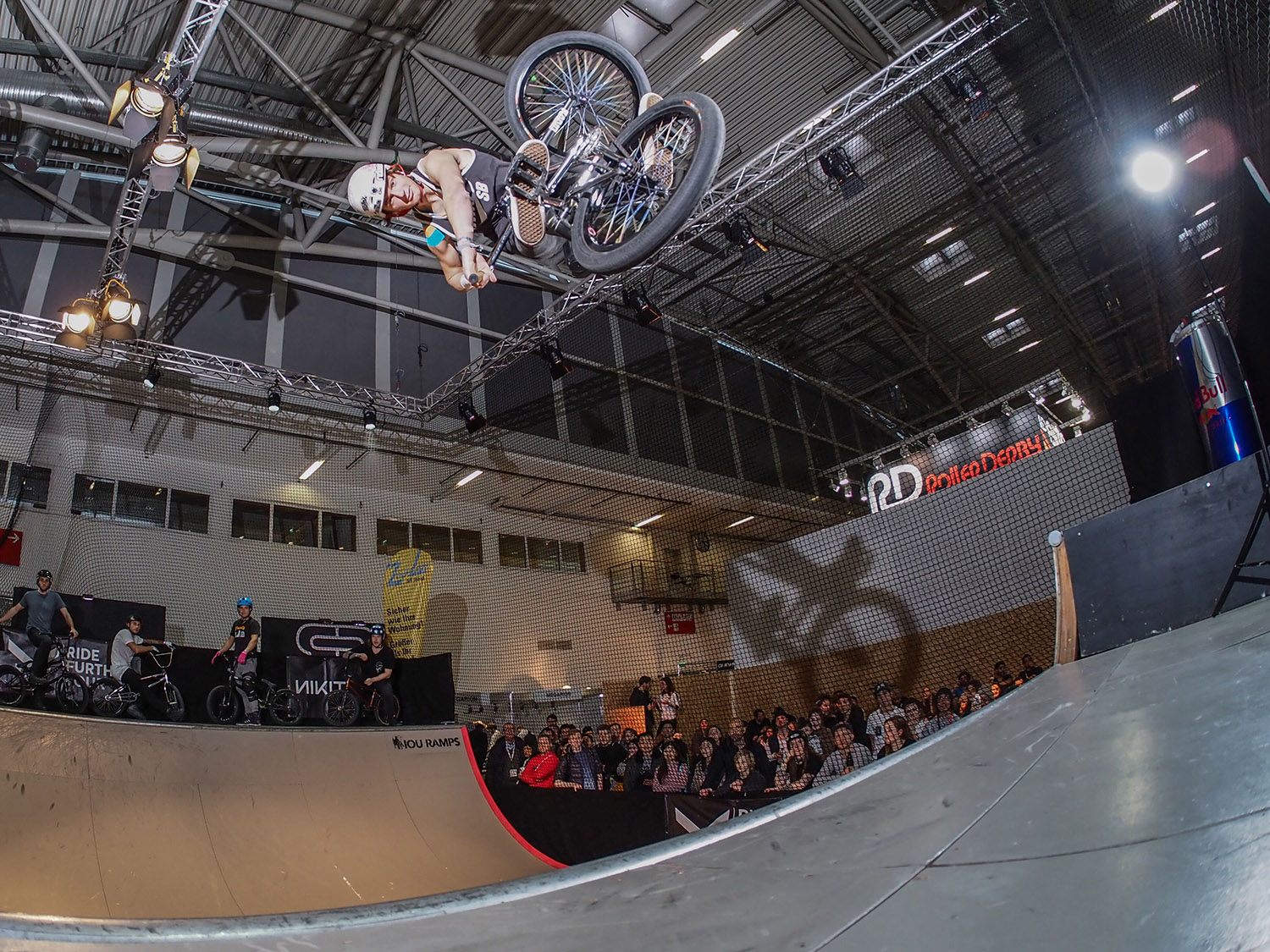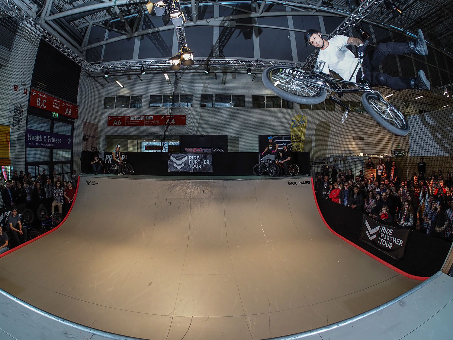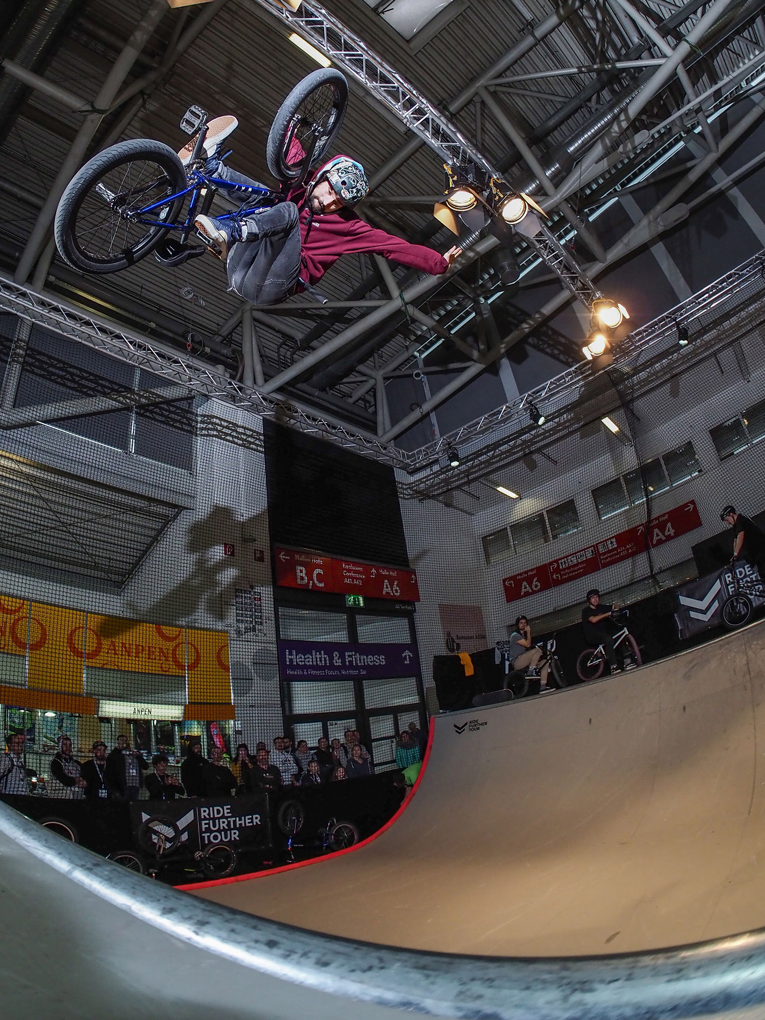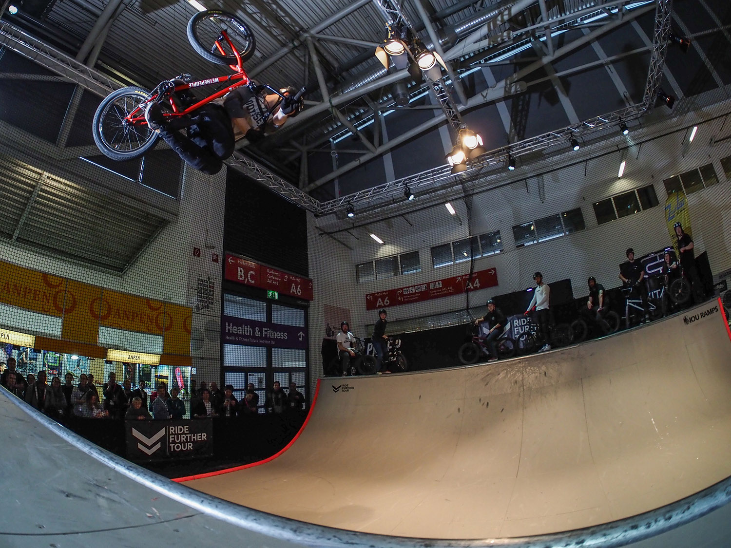 Während sich in Tallin das Who-Is-Who der BMX-Szene traf fand parallel der erste Stopp der Ride Further Tour auf der ISPO in München statt. Neben endlosen Sportartikel-Ausstellern und Innovationen gab es dort ein hochkarätiges Starterfeld auf der Minirampe zu bewundern. Sowohl internationale Fahrer wie Sergio Layos, Michal Kovakovic, JB Peytavi als auch ein großer Teil der deutschen Park-Szene wie z.B. Evan Brandes, Daniel Juchatz, Jonas Lindermair, Michael Meisel, Miguel Franzem, Julian Bachmann und Jennifer Wohlrab gaben sich auf der FURTHER Miniramp vor den Augen der sportinteressierten Messe-Besucher und Aussteller eine heftige Session.