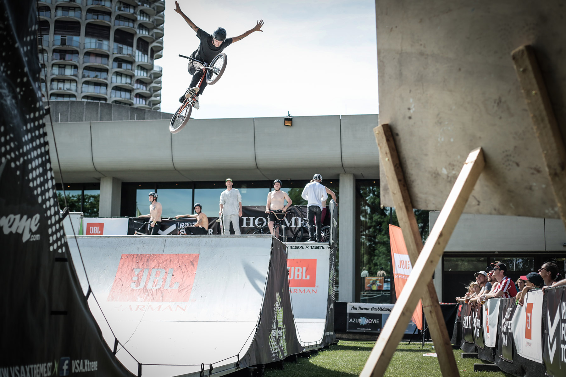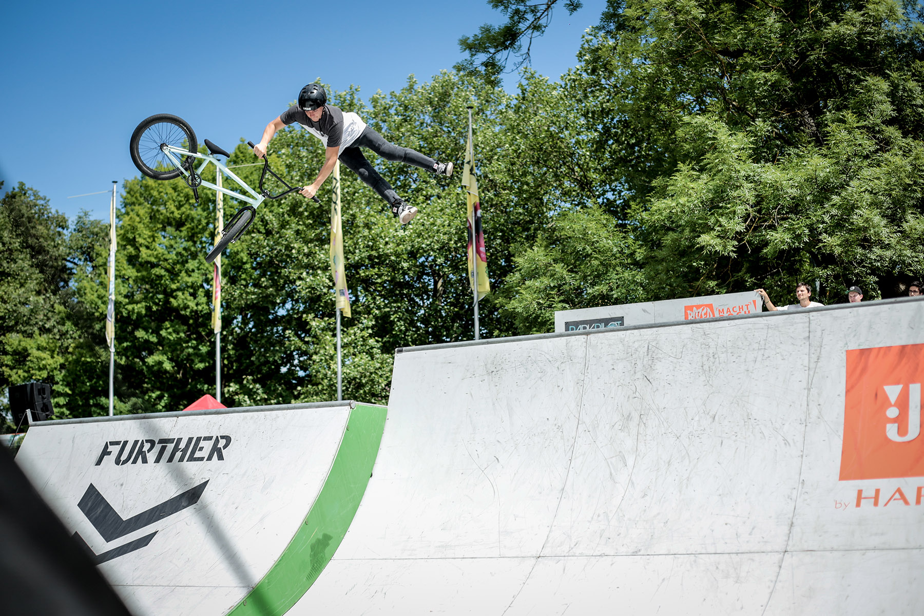Am Sonntag lieferten die 16 Finalisten dann eine grandiose Show ab. Der erste Platz ging an Sergio Layos (ESP) mit einer 270 X-Up to Lookback und 360-Combos gefolgt vom Local Jonas Lindermair (DE) mit einem 540 Double Barspin. JB Peytavit (FR) wurde Dritter mit seinem Signature-Bikeflip und Adrian Malmberg (SWE) ergatterte den vierten Platz dank stylischen Runs inklusive 180 Whip und einem 180 über das Absperrgatter.