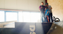 Trotz sommerlicher Temperaturen hatten eine Menge Fahrer den Weg nach Wermelskirchen gefunden, um die neue Halle zu begutachten. Neben dem verbesserten Streetparcours stach sofort die neue Minirampe ins Auge, aber auch die noch nicht ganz fertig gestellte Bowlcorner sah vielversprechend aus. Insgesamt ist die neue Halle über 200 qm größer als die alte Anlage, und zusammen mit der großen Glasfront, die viel Licht in die Halle lässt und dem großzügigen Sanitärbereich (inklusive Duschen!) stellt der Umzug eine eindeutige Verbesserung dar.