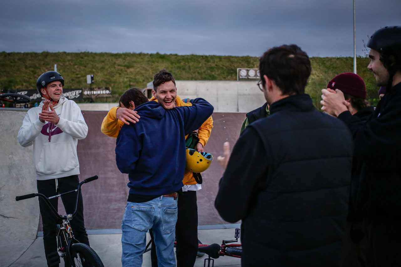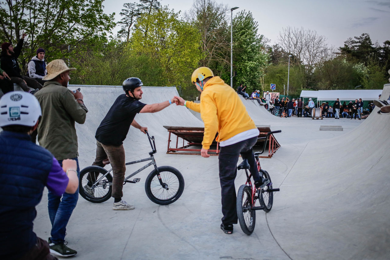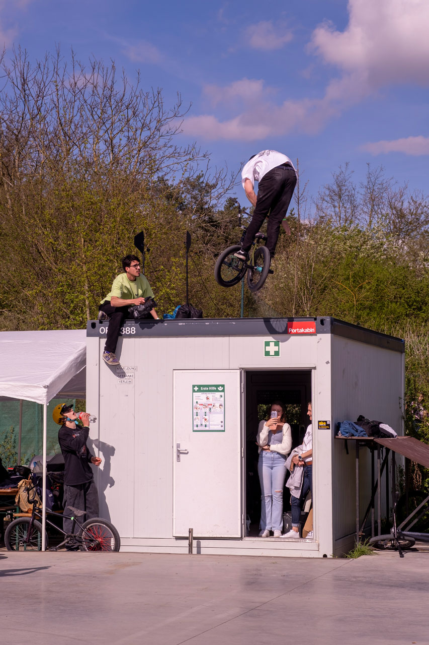 Alles in allem also eine überaus gelungene Erstauflage. Wir freuen uns schon auf die Wiederholung im kommenden Jahr, die soll es nämlich auf jeden Fall geben. Zum Warmfreuen und um die Wartezeit ein wenig zu verkürzen, haben wir hier einen Schwung schicke Bilder von Sebastian Gerlich, Timm Dauth und Daniel Grabinski. Btw, das sind drei BMX-Generationen. Geisteskrank, oder? Und genau war das war das Ziel des Strawberry Jams: BMX-Fahrer:innen aller Level, Disziplinen und Altersklassen zusammenzubringen. Mission accomplished, könnte man sagen!