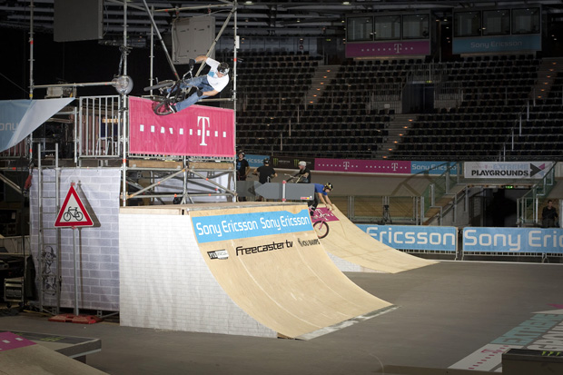Bevor es morgen bei den Telekom Extreme Playgrounds in Berlin ums Ganze geht, war heute schon mal lockeres Einfahren im Velodrom angesagt. Während die anglo-amerikanische Fraktion anscheinend wenig Interesse daran hatte, sich sonderlich zu verausgaben und stattdessen lieber B.I.K.E. spielte (Halfbarspins inklusive), nutzten die deutschen Starter die vierstündige “Trainingseinheit”, um die ersten Lines auszuchecken. Na ja, jedenfalls die, die nicht zu verkatert von der Party am Vorabend waren. Was dabei rumgekommen ist, seht ihr auf unseren bewegten und unbewegten Bildern, und alles Weitere dann am 20. November ab 12 Uhr im Livestream: