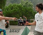 Ein sonnenreicher Tag in Giverola liegt hinter uns und die Vorläufe sind Geschichte. Es gab eine Menge erstaunliche Dinge zu sehen. Am erstaunlichsten war mit Sicherheit Ben Hennon, der sich morgens von acht bis neun Uhr warm gefahren hatte und in seinem Qualifikationsrun die allerhärtesten Tricks auf Eins machte. Selbst nach einem Wallride, für den er wegen starker Frontlehnung rechtmäßig mit dem Leben hätte bezahlen müssen, schaffte er irgendwie noch einen sauberen Abgang. Es gab selten so wenig Zweifel am ersten Platz der Vorläufe.