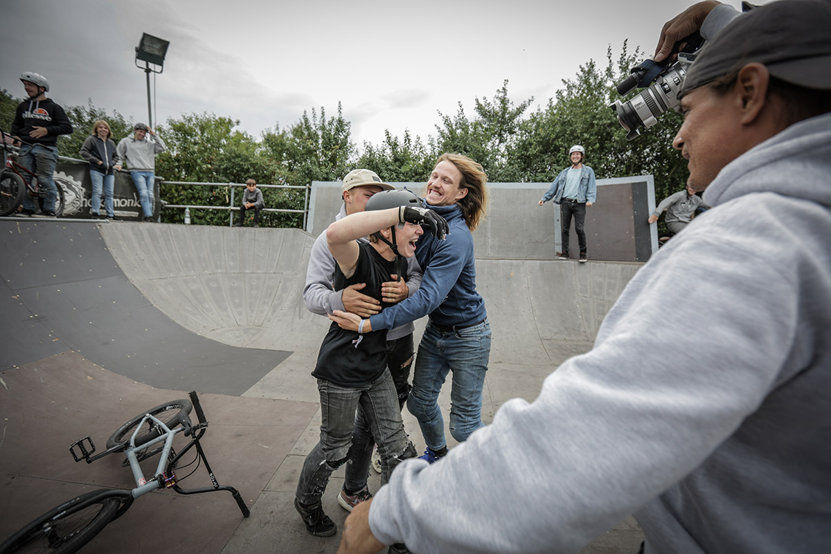 Michael Meisel fegte wie ein Gestörter mit Triple Whips und Transfers wie diesem Nohander durch den Park und wurde am Ende für seine beeindruckende Performance von den Judges mit dem 1. Platz belohnt