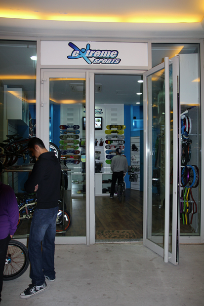Als erstes besuchten wir den Skatepark, der aus einem sehr interessanten Setup besteht und direkt neben einer riesigen Mall und dem Strand liegt. Die Jungs fahren da meistens zwischen 17 und 22 Uhr, denn im Sommer kann es schon mal 55 °C heiß werden. Ich bekam sofort ein Rad angeboten, und so drehte ich meine ersten Runden auf einem BMX in Asien. Einen Tag später machten wir uns auf die Suche nach dem BMX-Shop Q8 Extreme Sports, der aus einem großen Hauptgeschäft mit MTBs und Rennrädern und zwei Dependancen besteht, von denen eine direkt am Skatepark liegt.