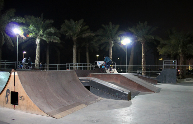 Als ich die Bestätigung für meinen Flug nach Kuwait in der Hand hielt, machte ich mir zuerst über alles mögliche Gedanken, aber mit Sicherheit nicht über die eventuelle Existenz von Leuten, die dort BMX fahren. Dann schmiss ich Ecosia an, um aus Spaß nach „BMX in Kuwait“ zu suchen und bekam tatsächlich ein paar Treffer angeboten. So schien es nicht nur einen Park und einen BMX-Shop dort zu geben, sondern auch viele gute Fahrer. Und 2009 wurde sogar ein Lauf der FISE-Contestserie in Kuwait abgehalten und das DK Team war auch schon mal irgendwann zu Besuch. Im Vorfeld kontaktierte ich daher mit Sörens Jacobs Hilfe den bereits erwähnten Laden, um wenigstens einen Anhaltspunkt zu haben.