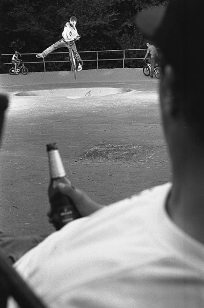 Natürlich ist das jetzt nicht unbedingt der attraktivste Spot in Köln, aber man kann das Ding schon ganz gut fahren. Oft hat man an den schlechtesten Spots am meisten Spaß. Wenn man es so sieht, kann es nur fantastisch werden. Damit die Streetfraktion auch noch was zu fahren hat, haben wir außerdem auf die Schnelle ein monströses Upcurb und ein Rail gebaut.
