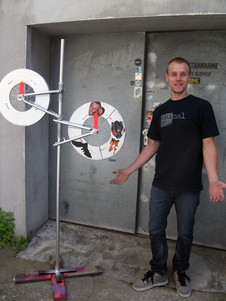 Wie auf dem Flyer angekündigt, wird es den “Wheel of Misfortune”-Contest geben. Was genau sich dahinter verbirgt, werdet ihr aber erst am Samstag erfahren. Das Ganze ist so dämlich, dass ich noch immer zweifle, ob es eine gute Idee war. Außerdem gibt’s ganz konventionell eine zwei Meter hohe Bunnyhoplatte, die es zu überspringen gilt. Ein bisschen was gewinnen kann man auch.
