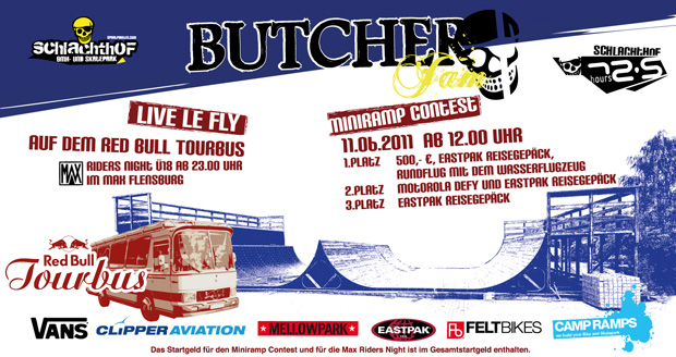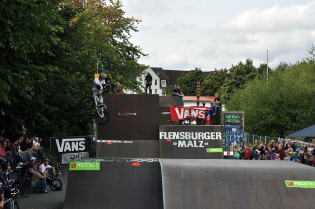 Puh … was ‘ne Frage 😉 Wir haben aus dem alten Schlachthof den neuen gemacht und freuen uns einfach über das, was jetzt in unserem Park steht. Vom Programm her wird es einen BMX-Contest in verschiedenen Klassen und Disziplinen geben, reichlich Rahmenprogramm mit dem Red Bull Tourbus und insgesamt sieben Bands … unter anderem Le Fly und Turbostaat. Die Veranstaltung gibt es jetzt seit 2008 und sie ist stetig gewachsen. Flensburg hat Bock auf BMX!