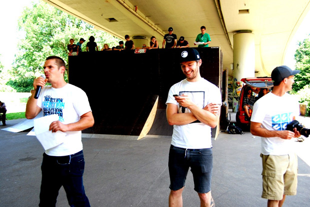 Nach zwei Stunden Schlaf ging es am Sonntag wieder nach Pinneberg, diesmal nicht zum Bau, sondern zum Contest. Das Wetter spielte mit und es kamen doch recht viele Fahrer aus dem norddeutschen Raum. Die neuen Rampen wurden im Practice und in den Runs fachgerecht bearbeitet. Viele Lines und Tricks wurden geschafft und es wurden ordentlich Punkte für die Tages- und die Gesamtwertungen gesammelt.