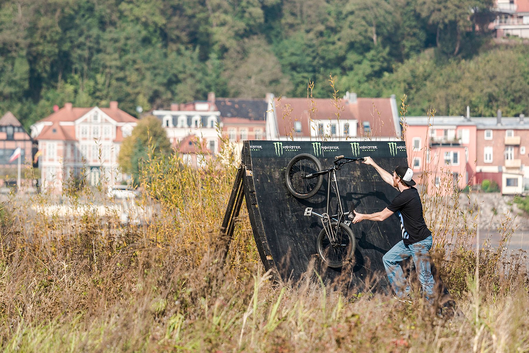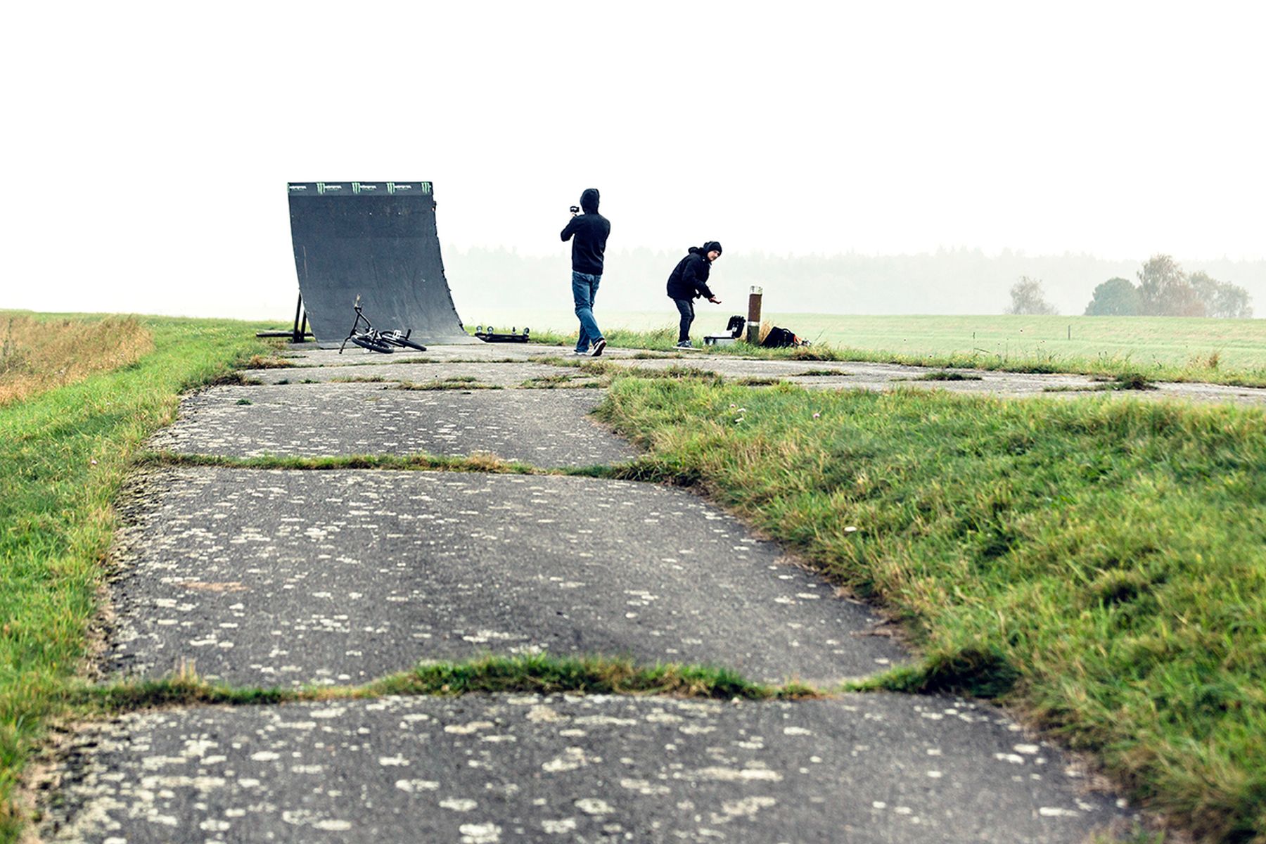 Am dritten und damit auch letzten Tag des Bananenprojekts in Norddeutschland ging es dann mit Christian auf Spotsuche in seinem Heimatdorf Hohnstorf, das sich im Landkreis Lüneburg befindet, etwa 40 Kilometer entfernt von Hamburg. Der erste Spot war genau an der Elbe, holprige Kopfsteinpflaster Anfahrt inklusive. Trotzdem schoss sich Christian mit einigen Tailwhips aus der Rampe. Danach ging es dann noch zu einem anderen Spot an einem Kanal, den die Bande bereits am Morgen ausgecheckt hatte. Allerdings waren die Schafe leider am eigentlichen Spot verschwunden, so dass die Session kurzerhand auf die andere Seite des Kanals verlegt wurde, um den bevorstehenden Sonnenuntergang im Hintergrund zu haben.