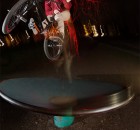 Nach einer Stunde ausprobieren, Blitze rumrücken und Beinaheunfällen hatte Jan den Barspin to Fakie dann mehrfach geschafft und ich war mit dem Foto einigermaßen zufrieden. Was mich immer noch stört, sind die halbtransparenten Geisterbilder seiner hellen Hose, aber da konnte ich nur zwischen Pest und Cholera wählen. Hätte er eine dunkle Hose angezogen, hätte er sich nicht genug vom Hintergrund abgehoben, hätte ich kürzer belichtet hätte, wäre der Hintergrund komplett schwarz abgesoffen.