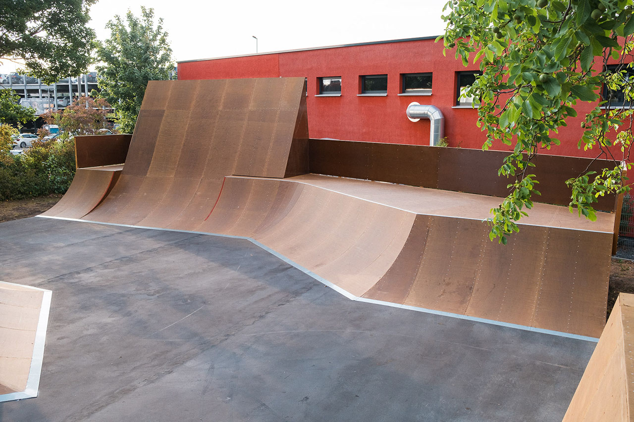 Engagiert wurde für den Bau Gedo Skateparks, die sich unter anderem auch für die Anlage in Darmstadt verantwortlich zeichnen. Ihr könnt euch also darauf verlassen, dass das Ganze auch Hand und Fuß hat. Und weil man schon einmal dabei war, wurde nicht nur der Course, sondern auch gleich noch der Asphaltboden neu gemacht. Nice! Hier sind einige Fotos von dem neuen Park. Lecker, oder?