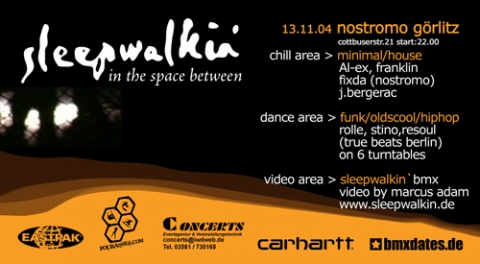 Am 13.11. 04 findet die Video-Premiere zu 'Sleepwalkin' im Nostromo Görlitz statt, Beginn ist 22.00 Uhr. 'Sleepwakin' ist die Road-Trip...