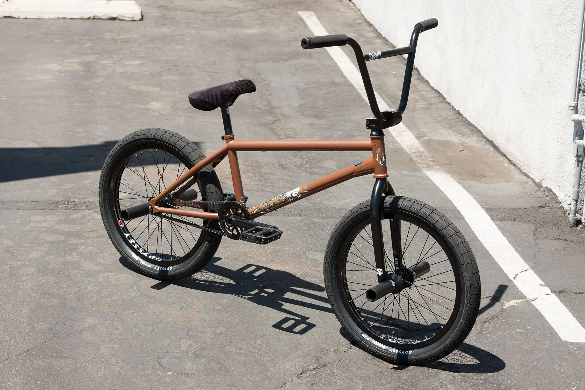 Bei dem Darkwave handelt es sich um Broc Raifords Signaturebike, das wirklich keine Wünsche offen lässt. Der Rahmen ist in zwei Oberrohrlängen erhältlich (21 oder 21,25″) und alle Rohre sind natürlich komplett aus Chromoly. Dank einem steilen Steuerrohrwinkel von 75,25° und einem 13,25–13,5“ langen Hinterbau fühlt sich das Rad nicht nur auf der Straße pudelwohl, sondern kann auch auf Transitions ausgeritten werden.